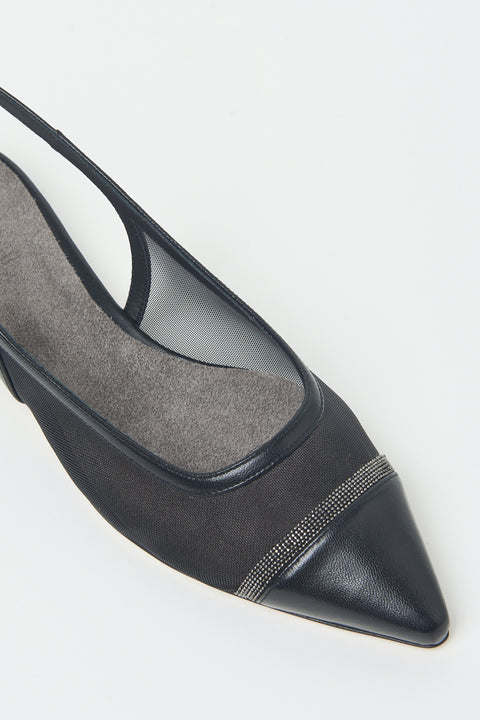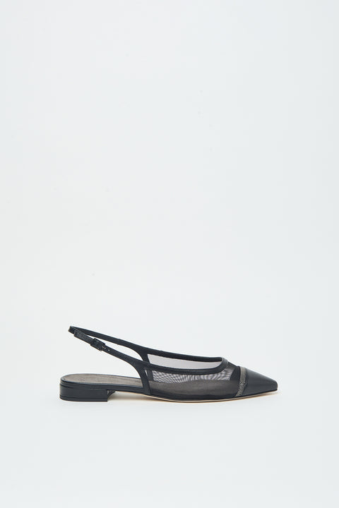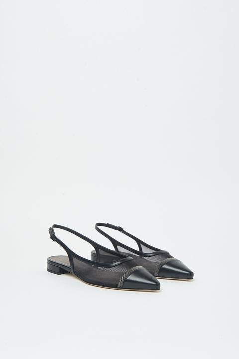 Эти туфли на плоской подошве сочетают в себе воздушный тюль и кожаную отделку, создавая изысканную и неповторимую модель.