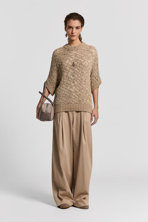 Перекрывающие друг друга складки придают объем этим брюкам-палаццо из легкого хлопкового габардина.