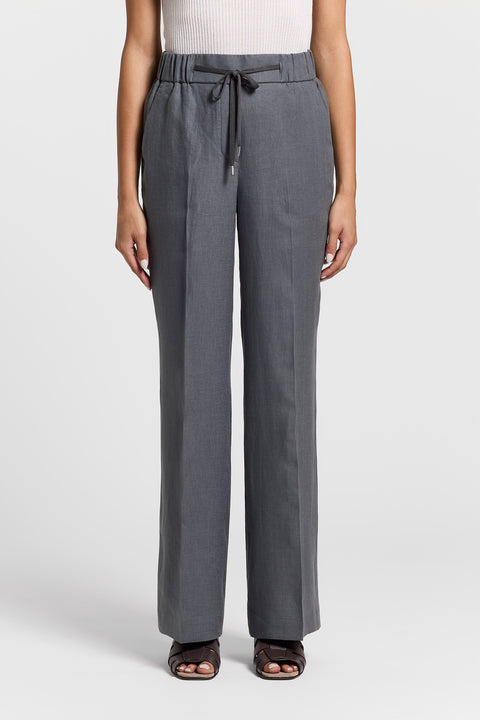 Эти брюки сочетают в себе элегантность кроя палаццо с отглаженными складками и комфорт эластичного пояса со шнурком.