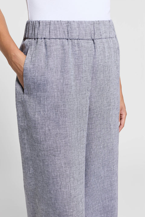 Эти брюки сшиты из легкого льна — натурального волокна, которое гарантирует свежесть, воздухопроницаемость и комфорт, что делает их идеальным вариантом для теплого времени года.