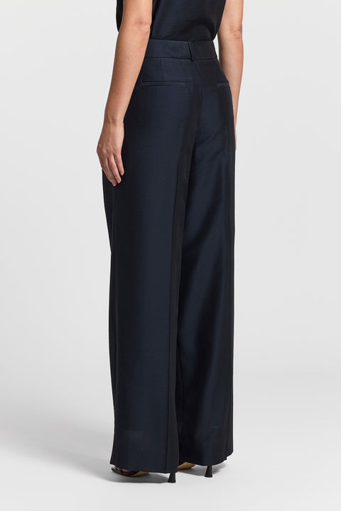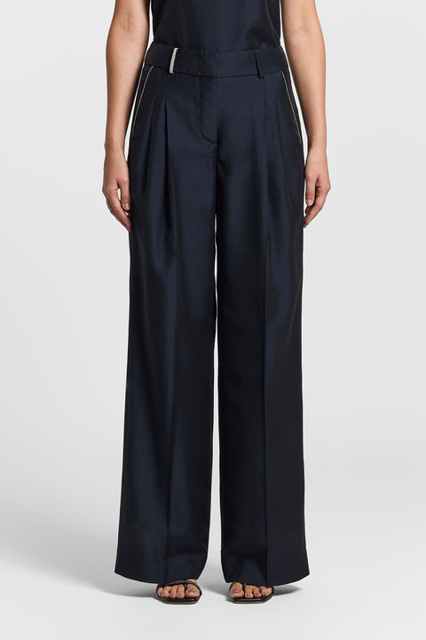 Легкие и изысканные брюки из полупрозрачной органзы подчеркивают фигуру благодаря крою «палаццо» и двойным складкам.