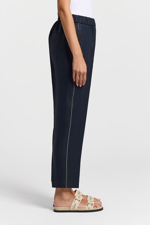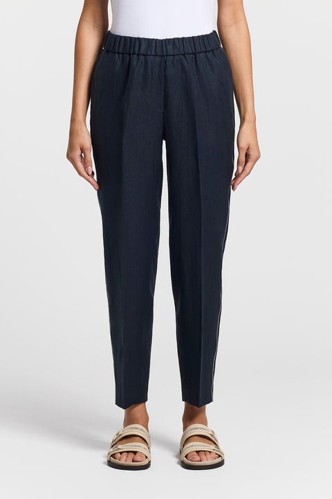 Эти брюки из чистого льняного габардина с эластичным поясом и зауженным кроем — вневременная классика Peserico в свежем летнем стиле.