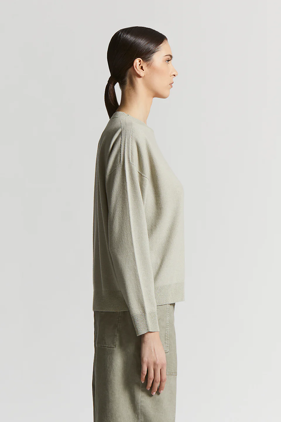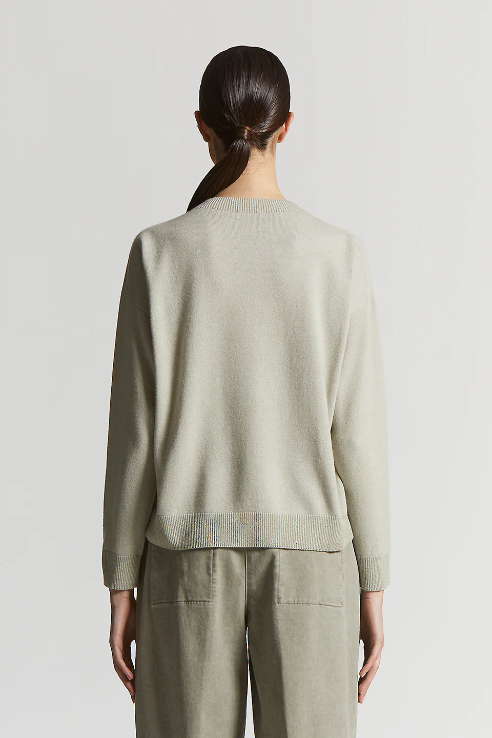 Этот свитер с круглым вырезом из чистого кашемира — воплощение изысканности и мастерства.