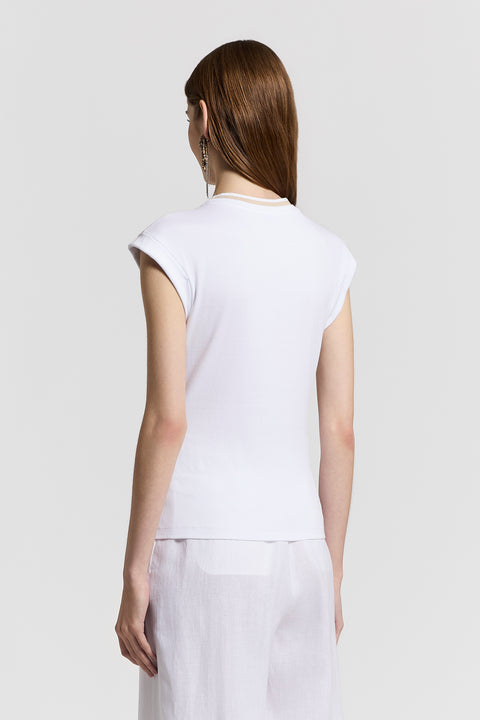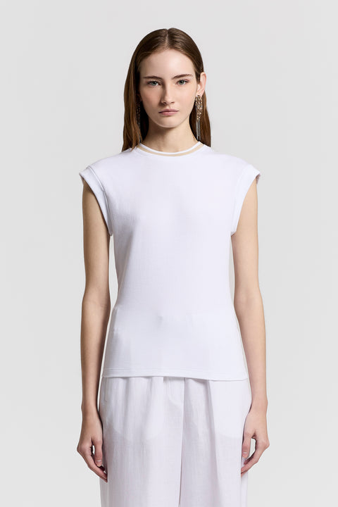 Эта облегающая футболка из джерси в рубчик изготовлена из тонкого хлопка и дополнена трикотажными вставками на горловине контрастного нейтрального оттенка.