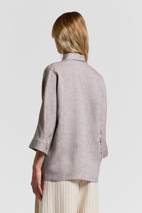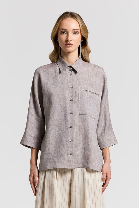Эта рубашка изготовлена из легкого льна — натурального волокна, которое гарантирует свежесть, воздухопроницаемость и комфорт, что делает ее идеальной для теплого времени года.
