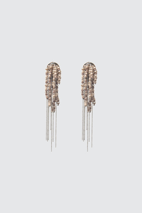 Эти серьги изящно покачиваются, переливаясь микрожемчужинами из стекла и хрусталя, которые при каждом движении ловят свет.