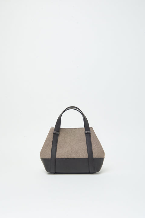 В этой сумке легкость хлопкового полотна сочетается с теплой и нежной текстурой натуральной кожи на основании, отделке и ручках, украшенных петлями Punto Luce, которые незаметно переливаются на свету.