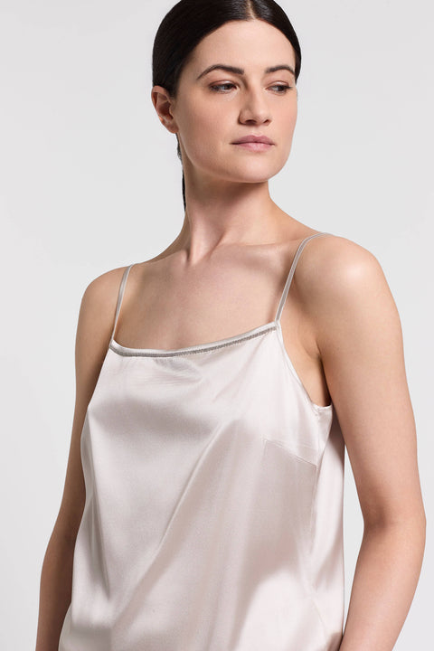 Этот топ из тонкого шелкового атласа — воплощение женственности.