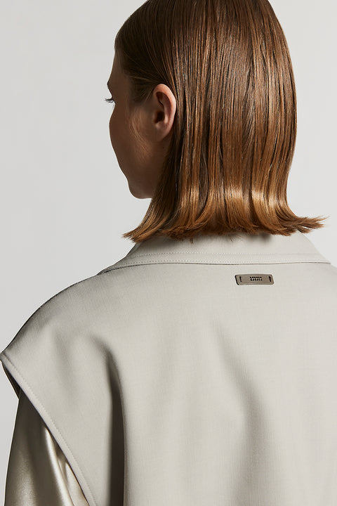 Жилет изготовлен из мягкого и прочного габардина из технической шерсти и украшен на плечах деталями Punto Luce.
